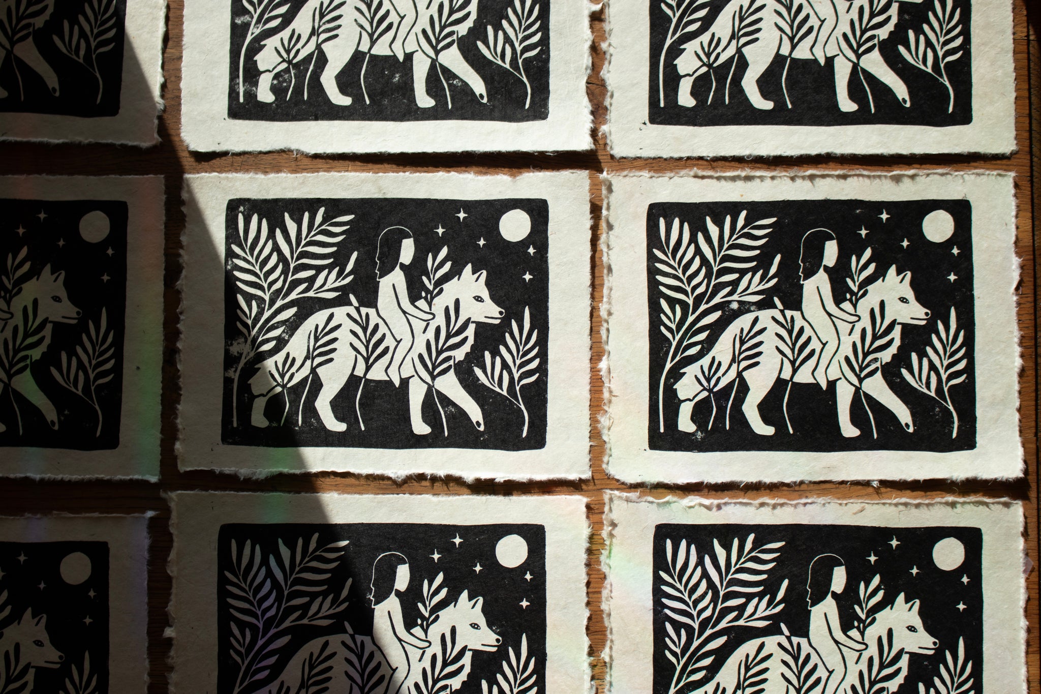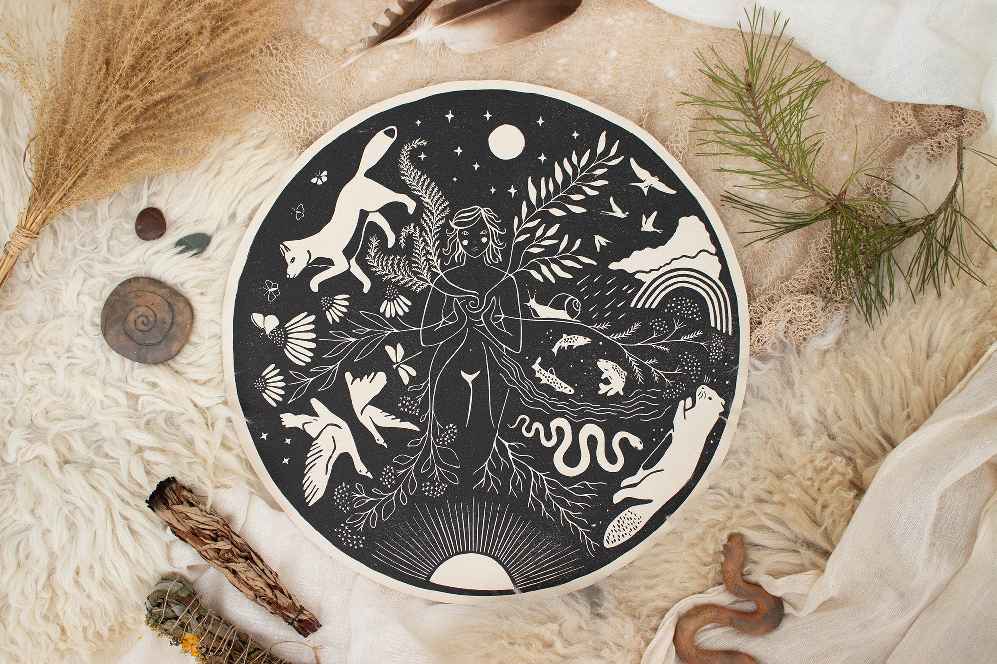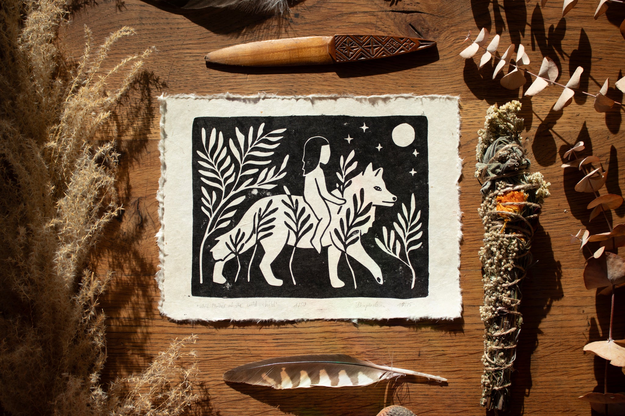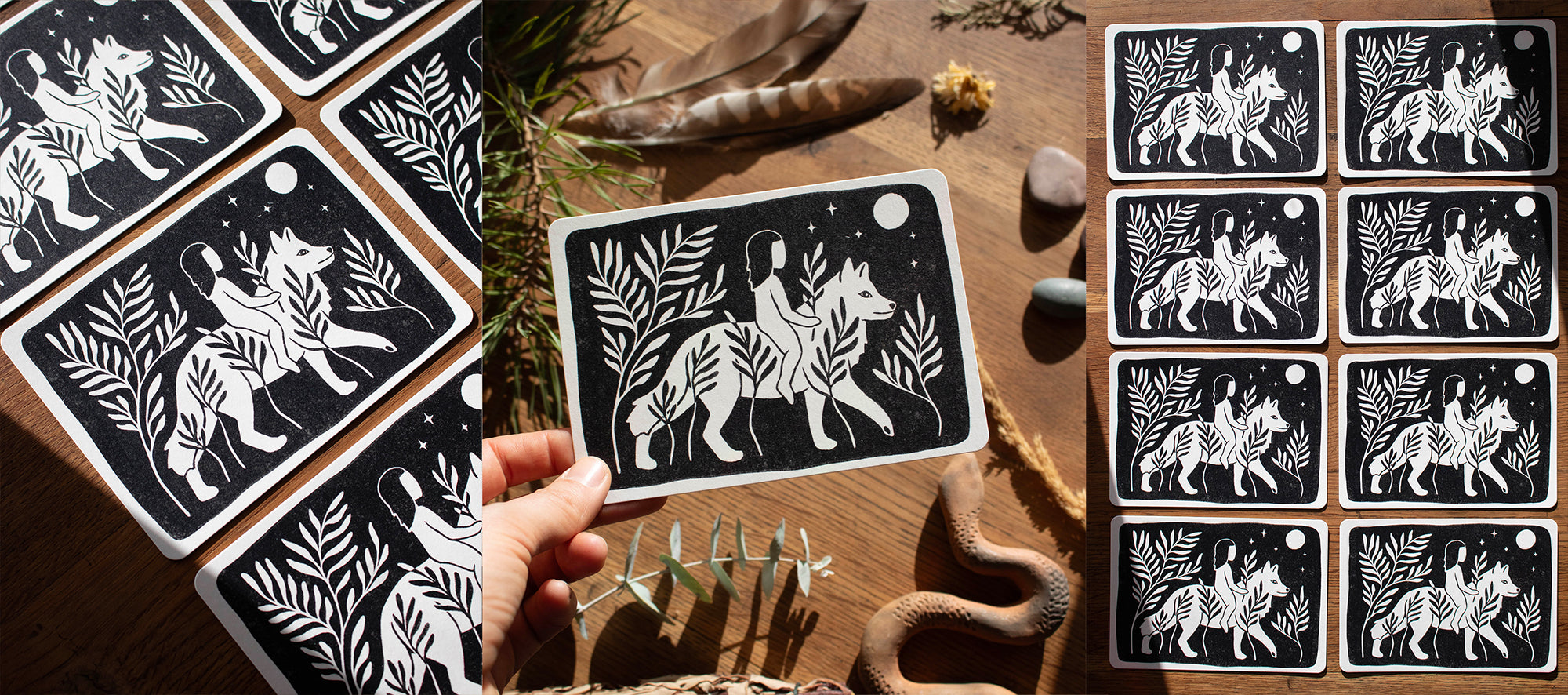 Tief berührt von der Natur um mich herum und inspiriert von der Landschaft meiner Seele, erschaffe ich durch den Linoldruck magische Kunstwerke.