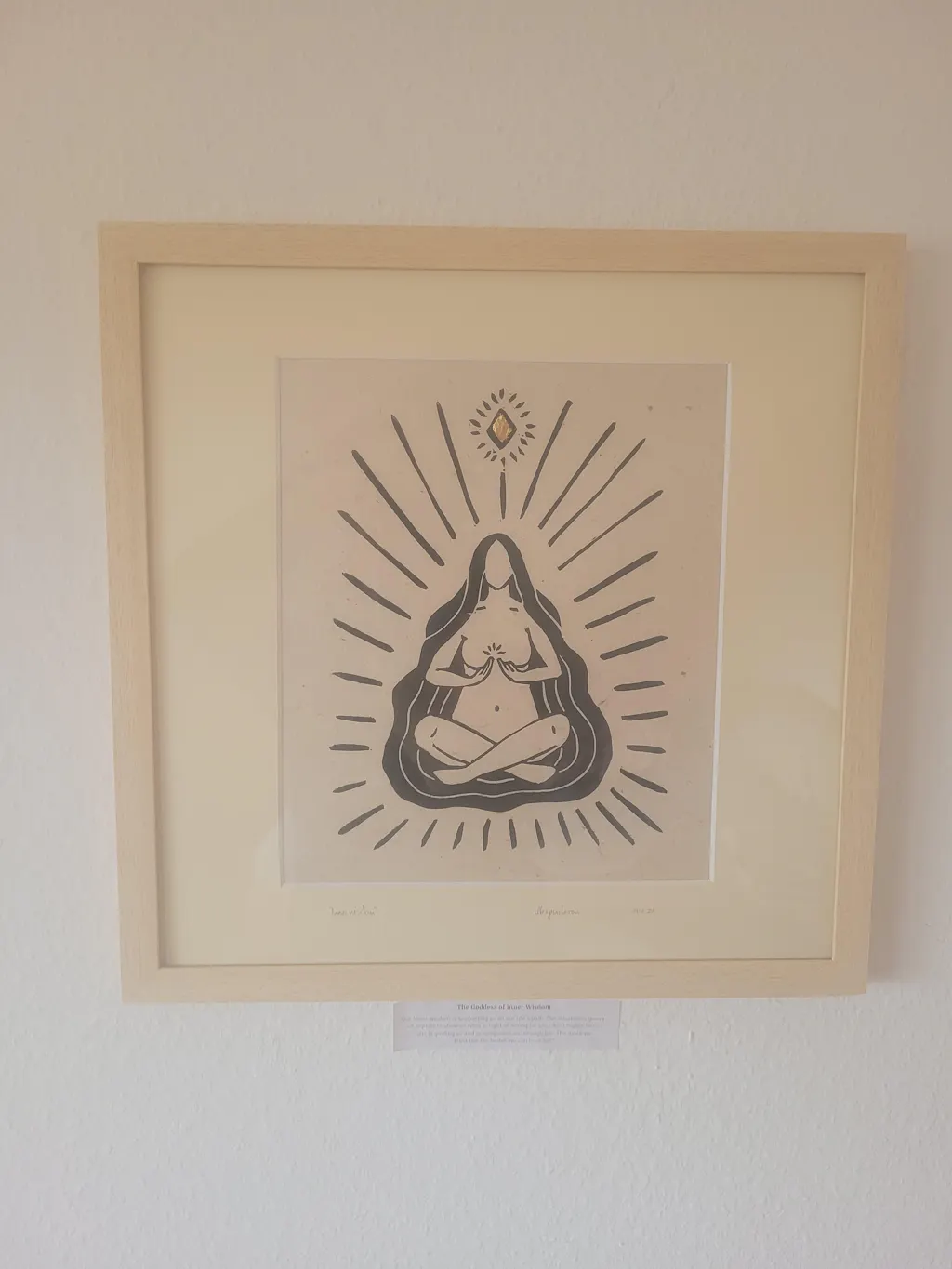 Bitte beachte: Auch wenn du auf dem Bild den Rahmen mit dem Druck siehst ist dieses Produkt NUR der Rahmen & das Passepartout! Den passenden Linoldruck der Göttin der Inneren Weisheit musst du bitte separat in deinen Einkaufskorb legen. Der Druck wird dann fertig gerahmt zu dir geschickt!