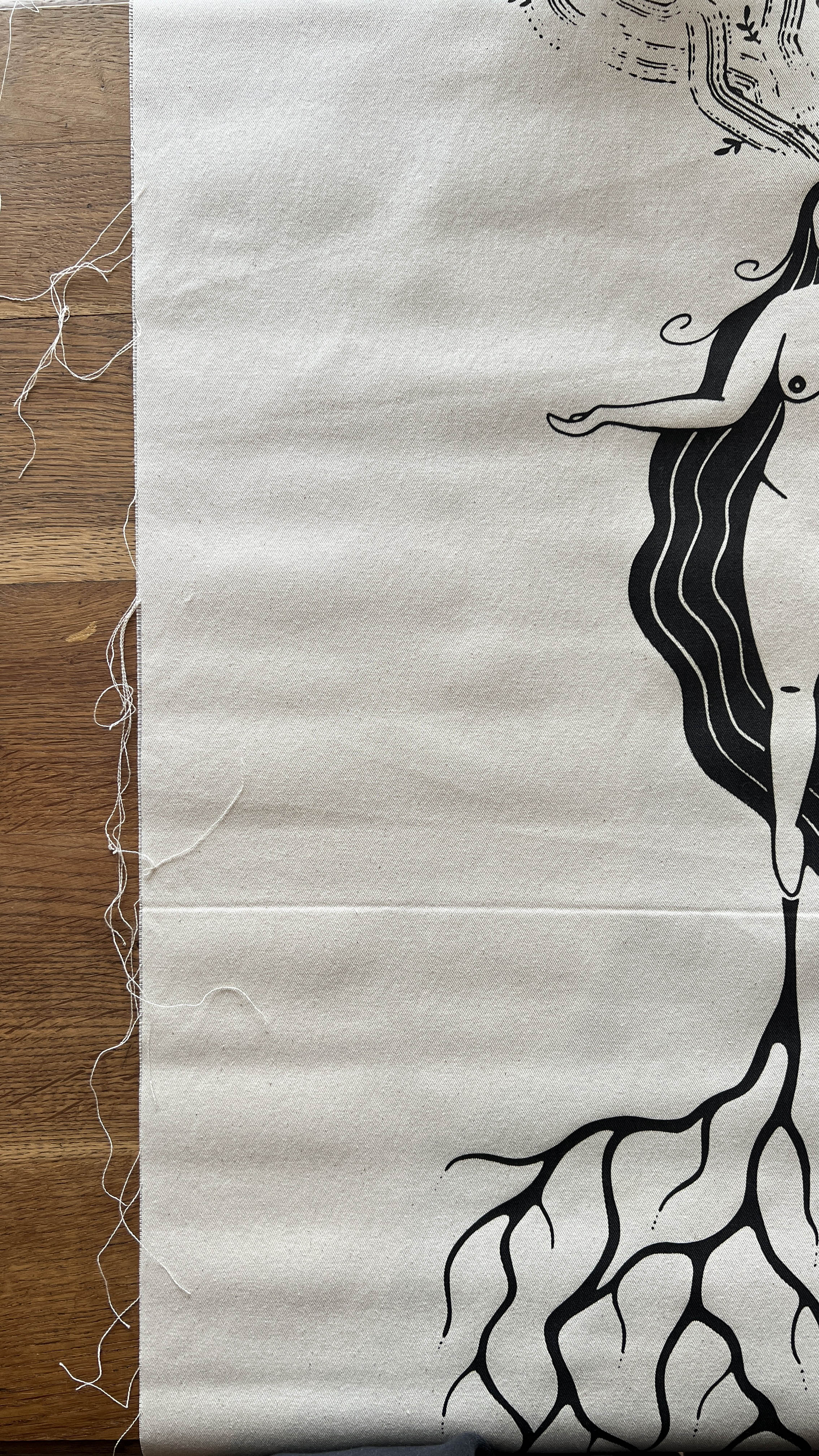 Der Stoff kommt ungebügelt, ungesäumt und ohne Aufhängung zu dir – genau so, wie er aus der Druckerei kommt.