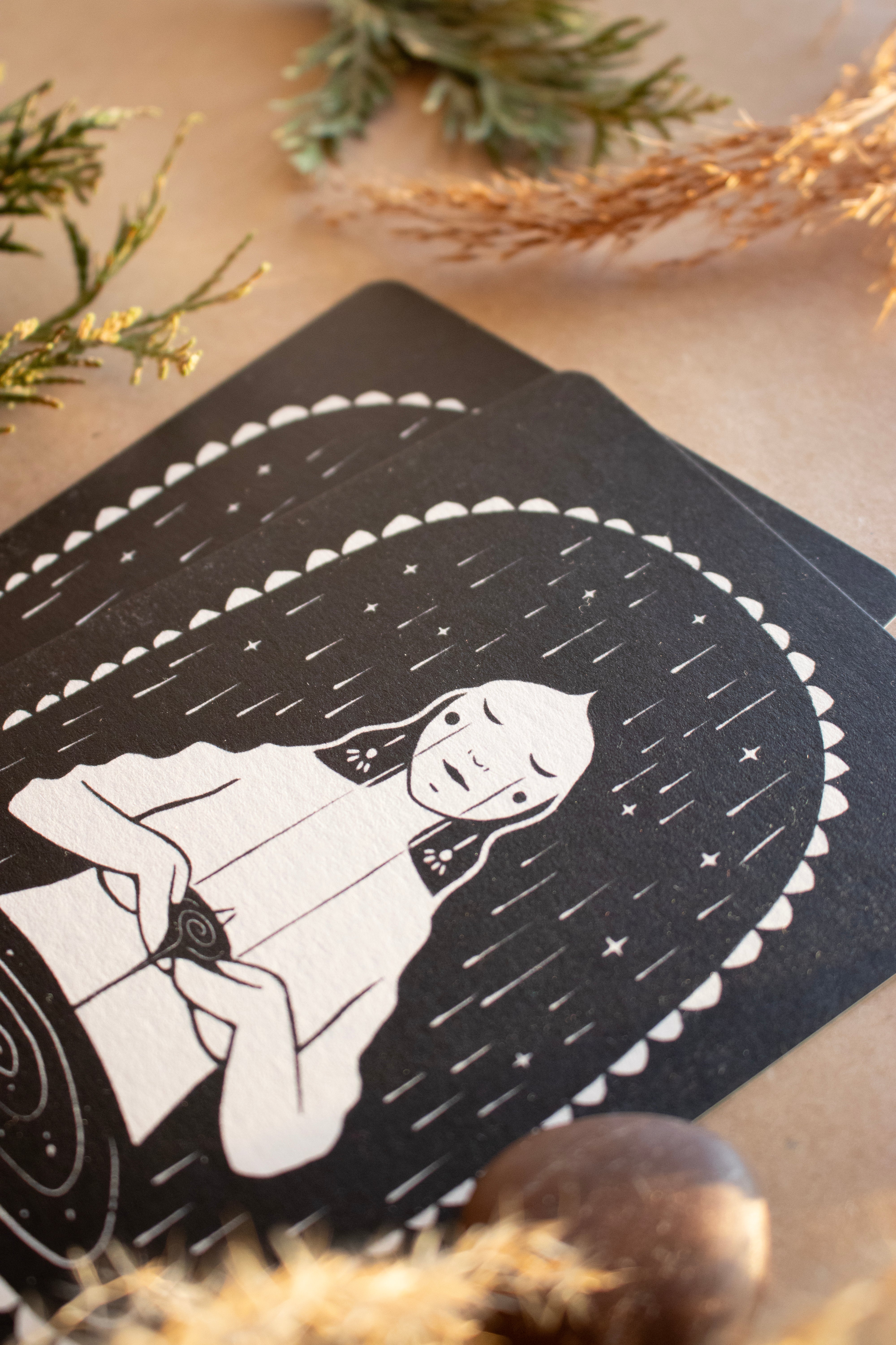 Here you will find a small selection of stickers, cards and original mini prints from which you can easily choose.