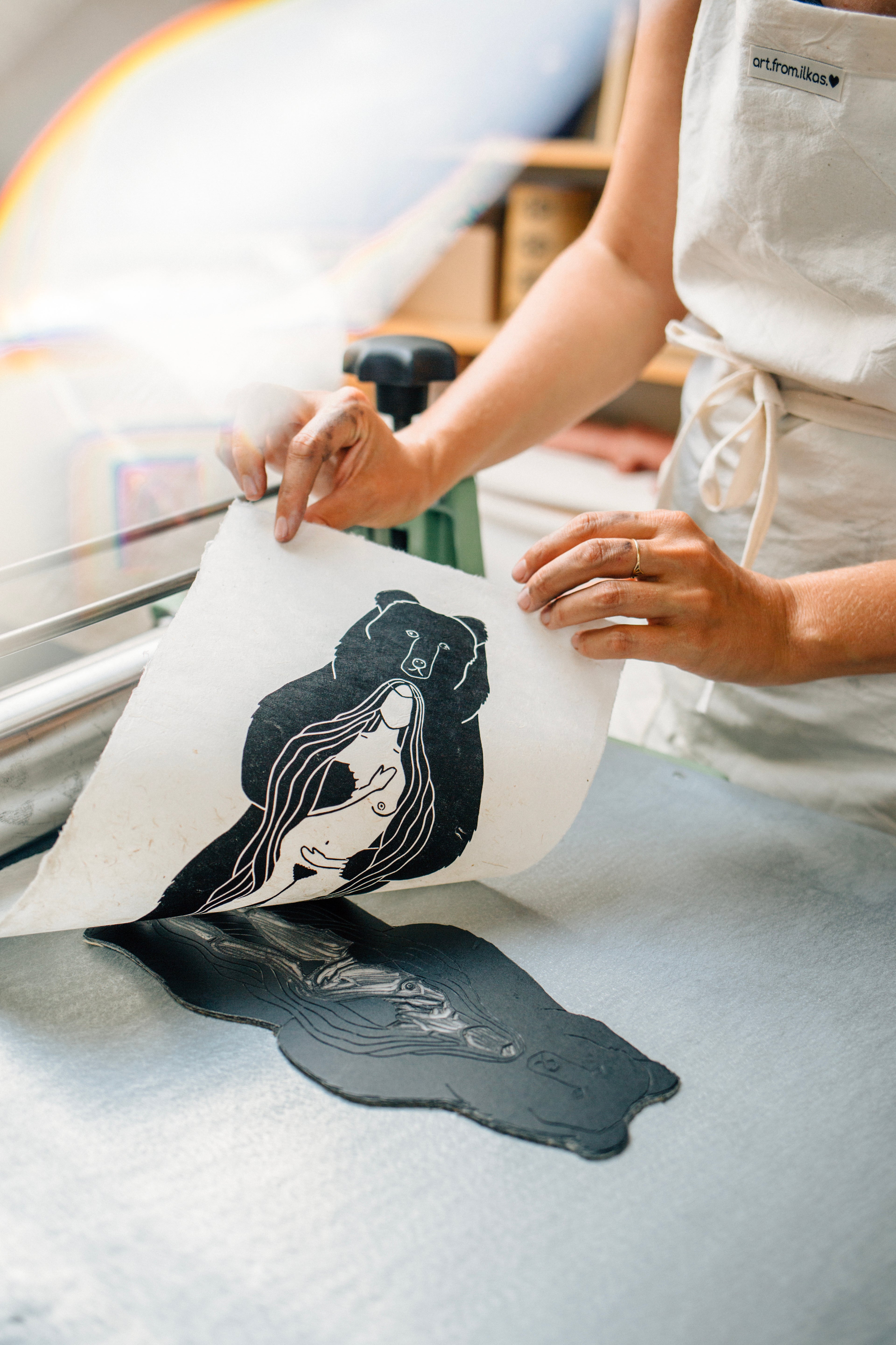 - Klassischer Linoldruck: In diesem Kurs gestalten wir individuelle Drucke auf Papier – von der Idee bis zum fertigen Kunstwerk.
