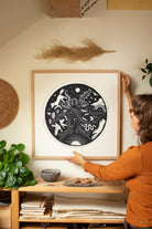 Jeder Druck ist von Hand gefertigt und dadurch einzigartig. Du kannst ihn ungerahmt oder mit einem wunderschönen Eichenrahmen und rundem Passepartout erhalten, das die Komposition noch einmal besonders hervorhebt. Den Rahmen & Passepartout findest du hier.