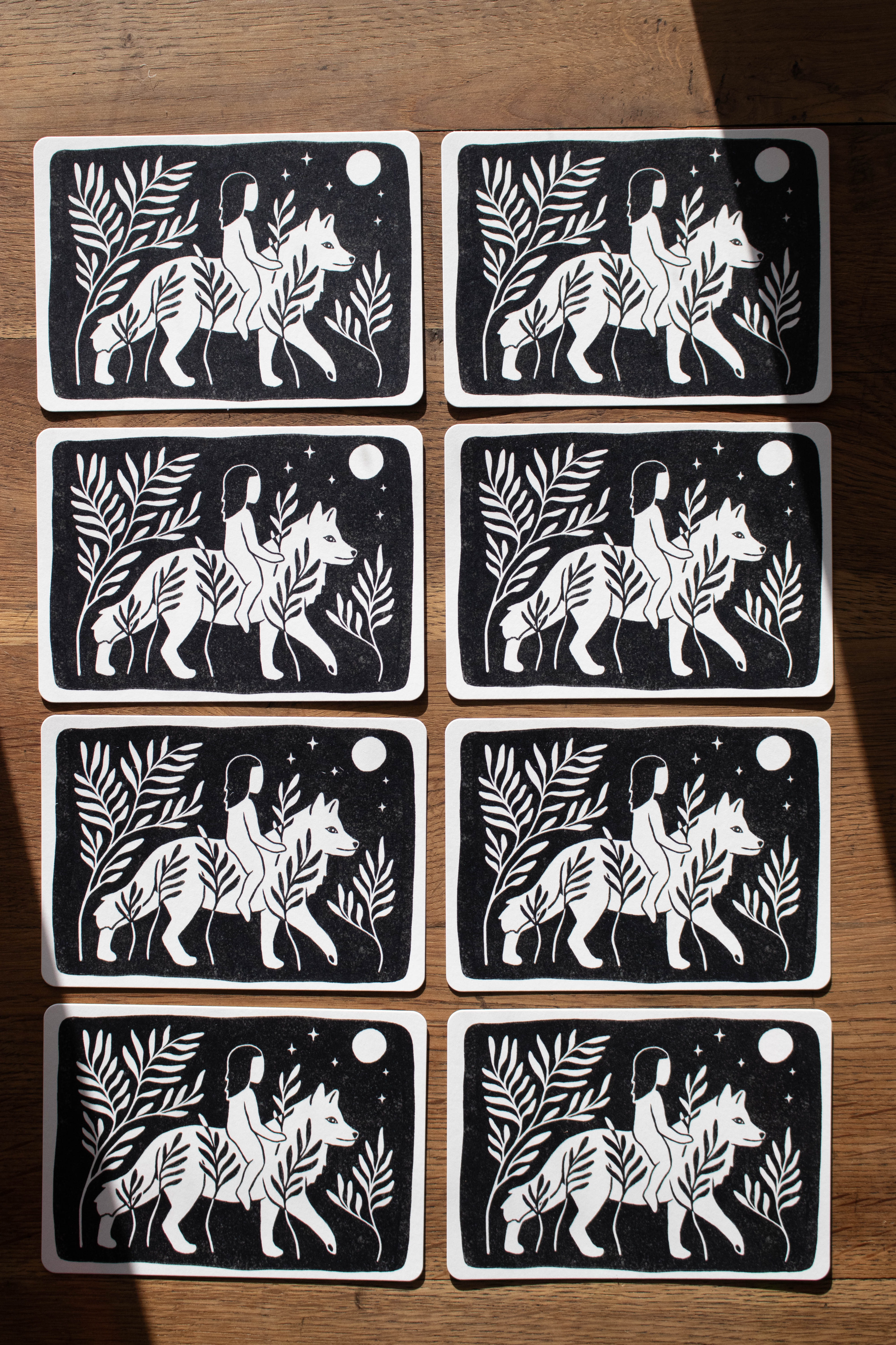Diese Postkarte erinnert dich daran, deinem inneren Kind eine liebevolle, wachsame Mutter zu sein – so weich und zugleich stark wie eine Wölfin.